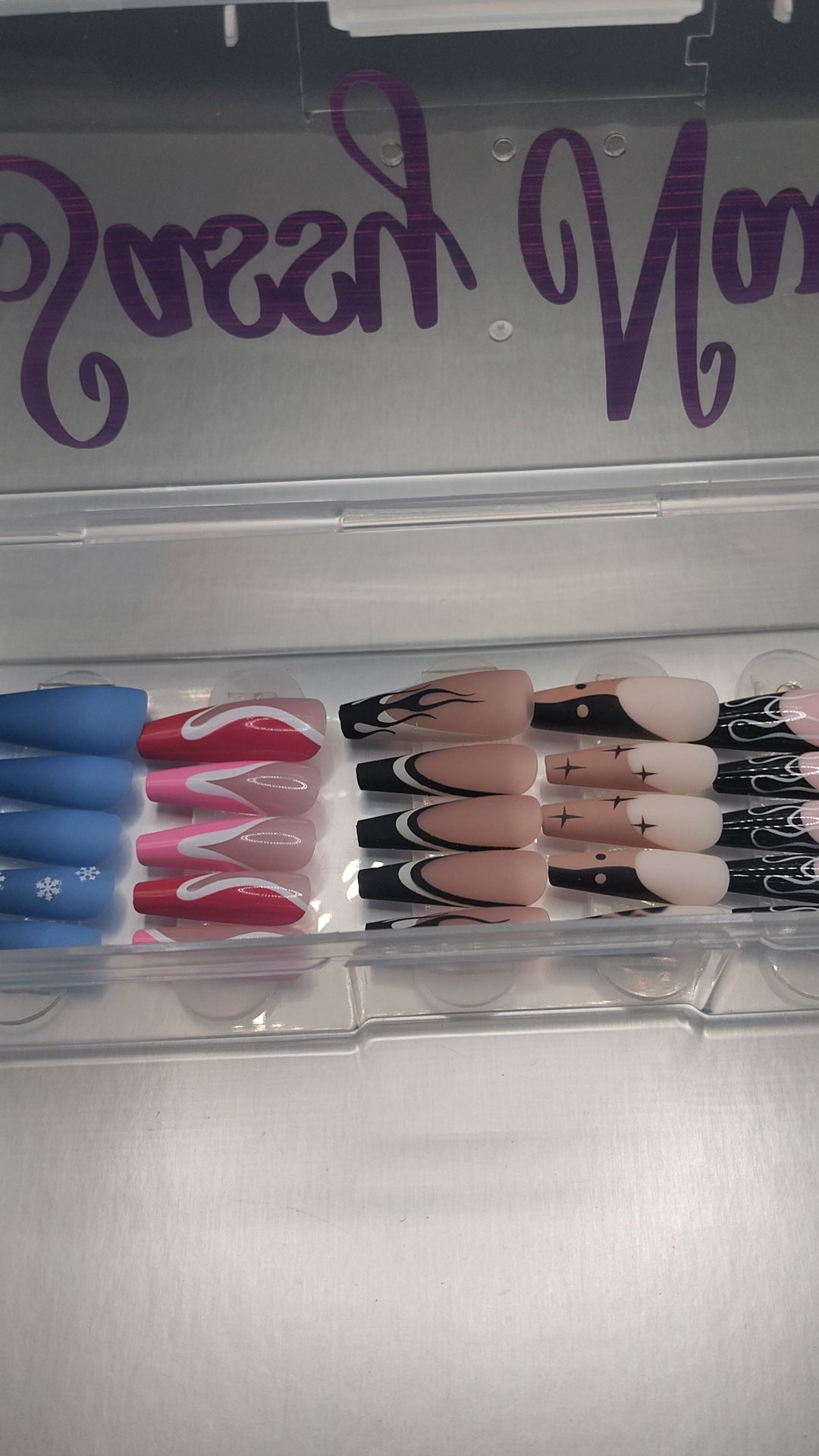 Sassy Nailz press ons storage boxes are so convenient. Store your new and reusable sets in one safe place. Each box holds 25-50 sets of nails. Choose box only, box with nail bags or box with display cards.