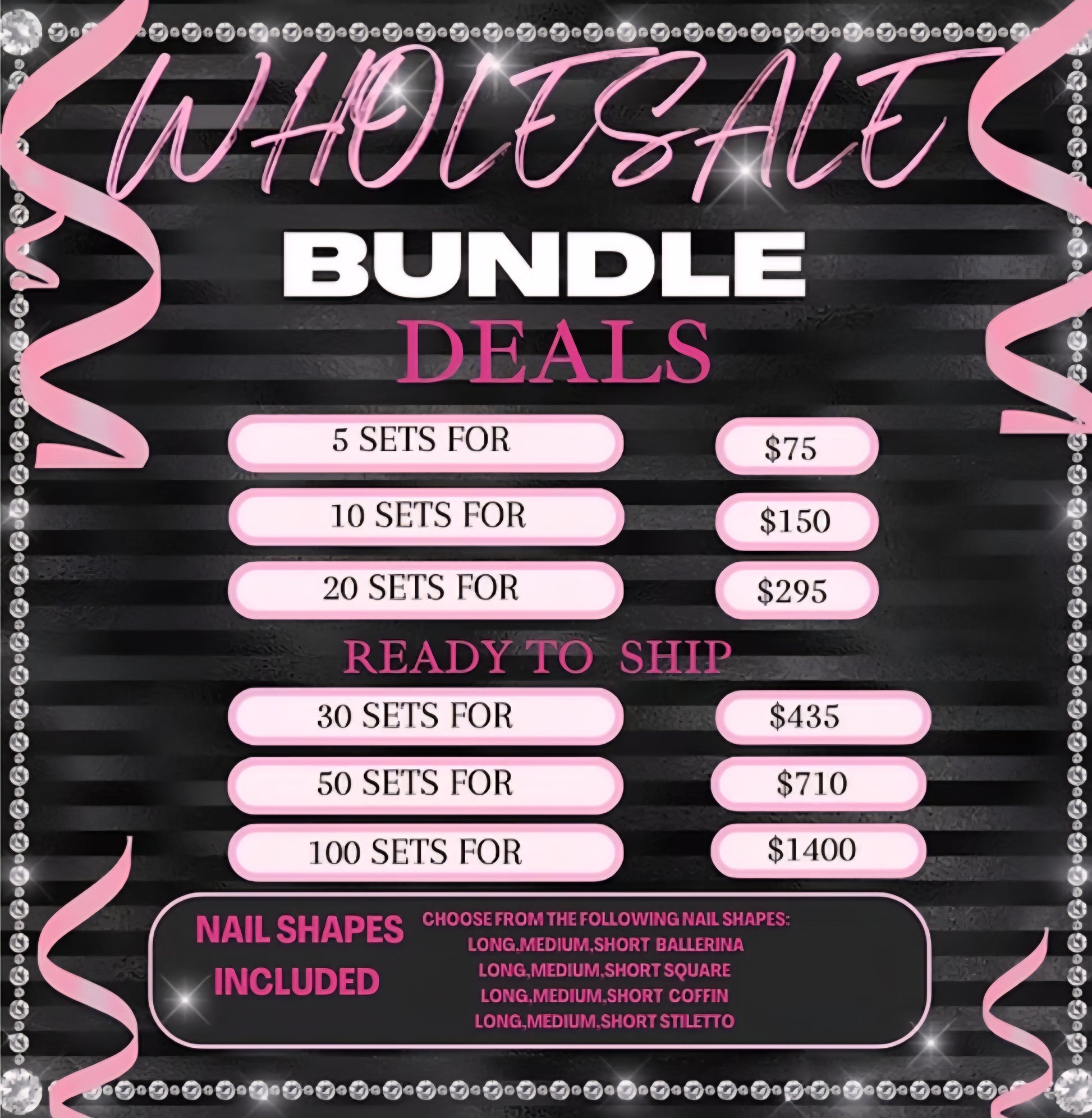 Email or DM before purchasing so that you may select the nail sets in stock from our ready to ship catalog.